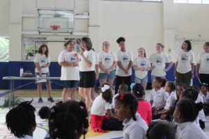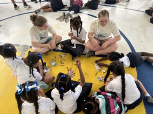 After the tours, we hosted VBS for 122 enthusiastic first- through third-graders. The energy in the gym was contagious! Together, we sang songs, read scripture, worked on a memory verse, and shared a Bible message that communicated the gospel. The kids greeted us with countless hugs, and shoulder rides quickly became a popular request. We also did a craft project, which the children loved, and wrapped up with games that had everyone laughing and enjoying themselves.