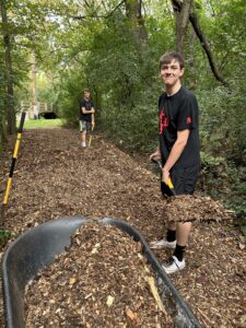 When we shared this vision with the staff at Lake Geneva Youth Camp, they understood the challenge of coordinating service projects for 124 students and their chaperones, but they were fully on board. The camp graciously hosted us, and our students, organized into House Groups, took on tasks like clearing brush, splitting and moving firewood, planting trees, laying mulch, and cleaning various areas around the camp.