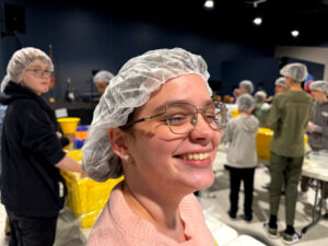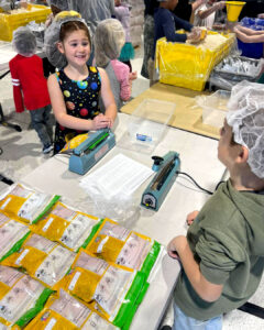 - Seniors Supporting Elementary Students: High school seniors paired with elementary students, guiding them through the process of measuring and packing meals. The love, patience, and encouragement shown by the seniors created a heartwarming atmosphere, fostering connections across age groups and embodying our school’s core values of Love, Learn, and Lead.